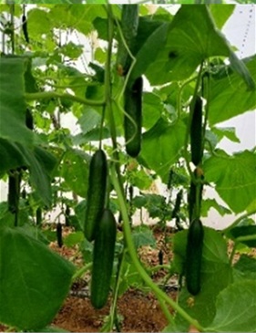 Parthenocarpic variety for autumn and winter cultivation. Early production with strong plant (open plants), short internodes, and single fruit setting. Excellent yield. lateral shoots, Fruits are 15–16 cm, dark green, ripped, glossy, excellent quality, and Long Shelf Life (LSL).