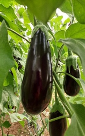Early parthenocarpic variety cultivation indoor and outdoor Vigorous plant with high yield. Fruit semi-elongated glossy black fruits, 18–20 cm length, with spineless calyx, excellent quality, and long shelf life.